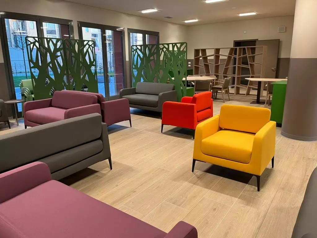 I soggiorni ai piani e gli spazi comuni per le attività di animazione, inoltre, consentono agli ospiti di rilassarsi e trascorrere i loro momenti liberi in compagnia.