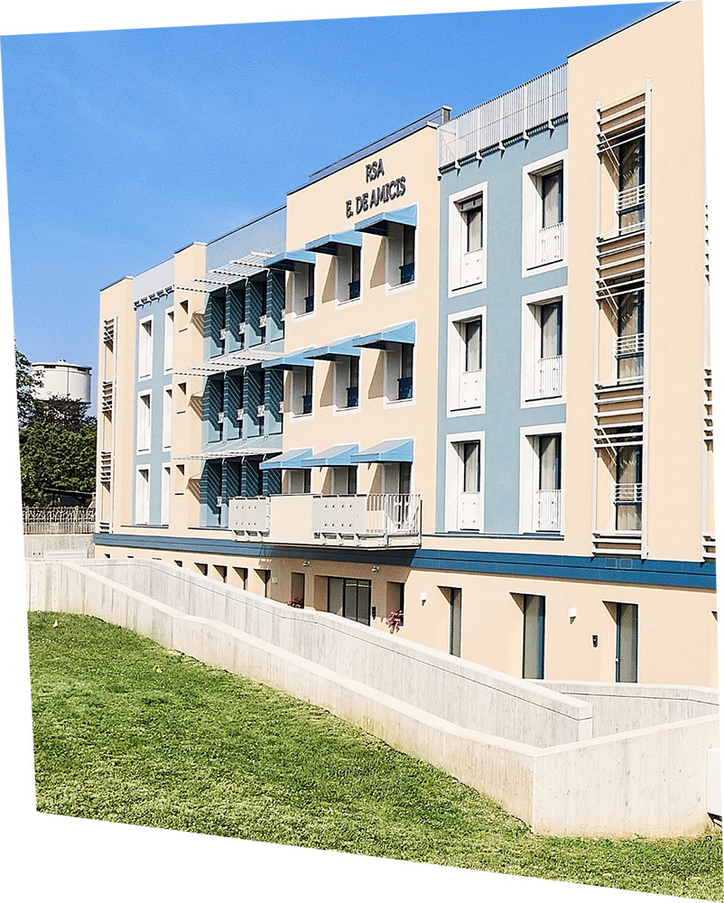 Inaugurata nel 2022, la Residenza Socio Assistenziale per la Terza Età Edmondo De Amicis è situata nel comune di Beinasco, nell’area metropolitana della città di Torino.