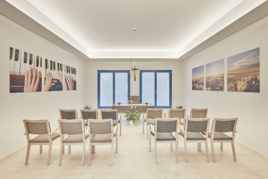 L’edificio offre inoltre una palestra per le attività di fisioterapia, un locale barbiere e parrucchiere, un luogo di culto e spazi comuni per le attività occupazionali e di animazione, dove gli ospiti e i visitatori possono intrattenersi in totale libertà.