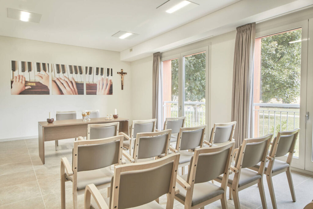 Realizzata con un occhio di riguardo sia al comfort dell’ospite che alla sostenibilità ambientale, dispone di un impianto fotovoltaico collegato a convertitori statici e pannelli solari termici. La struttura garantisce assistenza medica qualificata, infermieristica e riabilitativa, oltre ai servizi per il ristoro e l’intrattenimento della persona. È fornita di una cucina completamente elettrica, palestra, locale di culto, sala sensoriale, ampi spazi comuni e area verde dove trascorrere momenti di relax in sicurezza.